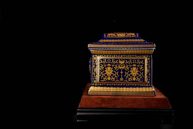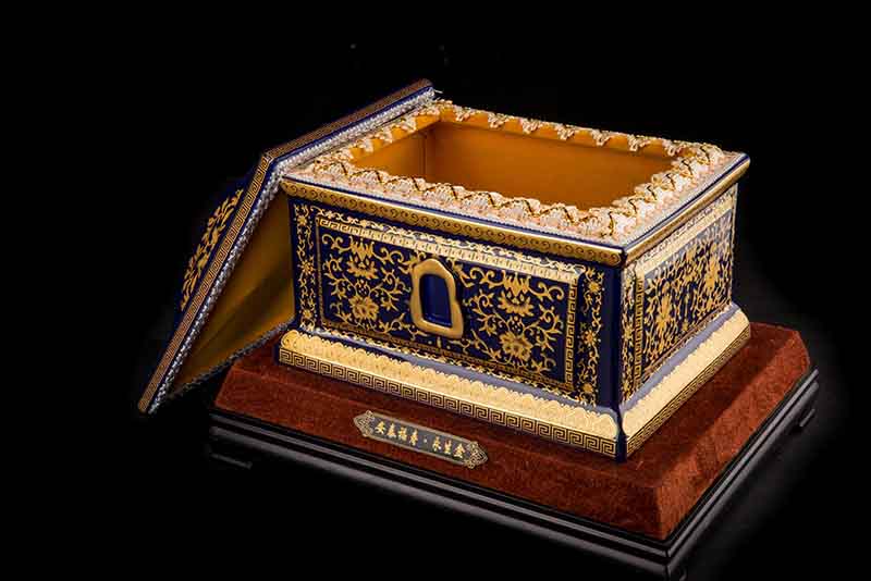 這款【吉祥如意】系列產品,目前有幾種顏色釉系列,黃、藍、紅、以及黑。這款產品運用中國古代傳統(tǒng)的吉祥紋飾—“纏枝蓮”?!袄p枝蓮”常運用在陶瓷作為點綴,因其結構連綿不斷,故又具“生生不息”之意,同樣保后代代代繁榮。尺寸:300x230x210mm