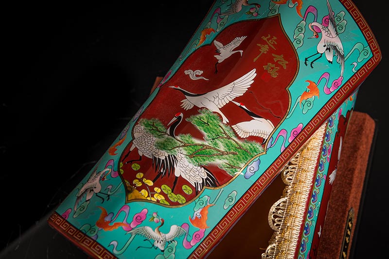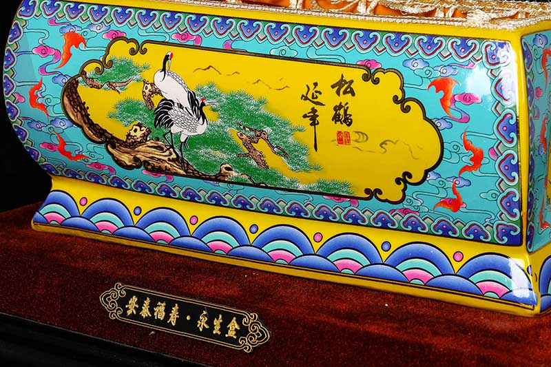 這一款產(chǎn)品采用的是景德鎮(zhèn)獨特工藝粉彩工藝,色彩鮮明,呈色自然。原料用的是 “高嶺土”一種特別土礦資源,“高嶺土”又有高齡之意,與我們產(chǎn)品【仙鶴年年】相得益彰,本款產(chǎn)品運用了仙鶴、松樹、松鶴延年則寓延年益壽或為志節(jié)清高之意。  尺寸:345x200x240mm